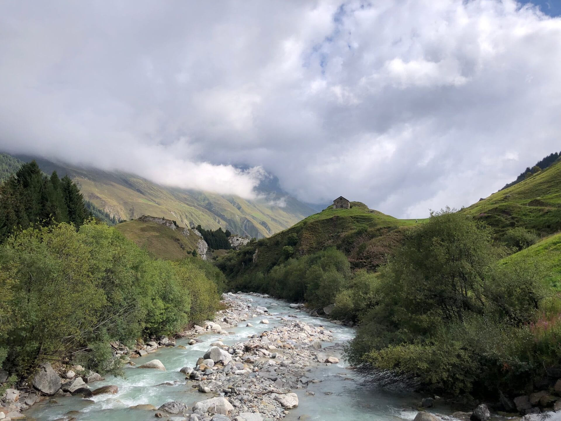 Samen met de Duitse Froniís sluiten we onze werkweek af met kaasfondue in het nabijgelegen Zum Dorf, het kleinste dorp van Zwitserland, gelegen tussen Hospental en Realp.